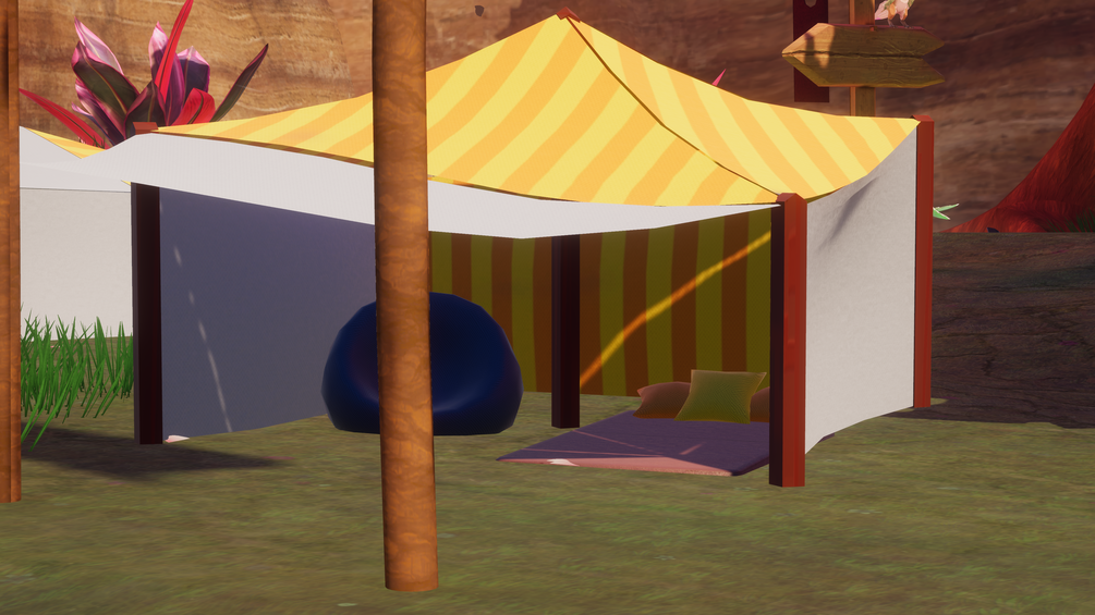 Inspired by my old free tent project, this new collection focuses on an Avali aesthetic while providing bigger options for more friends to hangout! Included is 3 different tent options of various sizes which can be toggled independently or all at once! This uses world constraints meaning this is unfortunately a PC only asset.